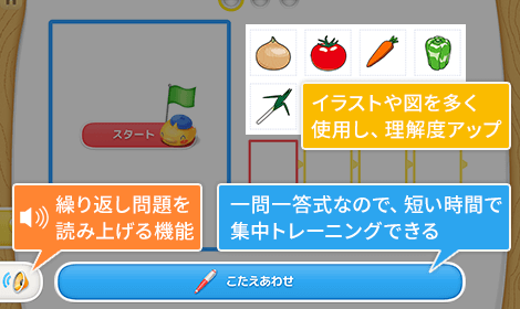 お子様の学習状況に合わせて、その都度カリキュラムを自動的に組み立てます。 -
